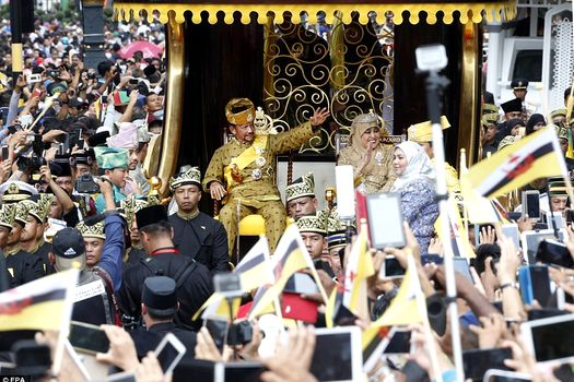 Cu ocazia Jubileului mandatului său, sultanul Hassanal Bolkiah, unul dintre cei mai bogaţi oameni din lume, a ales să se plimbe prin capitală, Bandar Seri Begawn, într-un car aurit, tras de 50 de bărbaţi, în faţa a mii de cetăţeni. Alături de sultan, în car a fost soţia sa, regina Raja Isteri Pengiran Anak Hajah Saleha, care îi este şi verişoară.