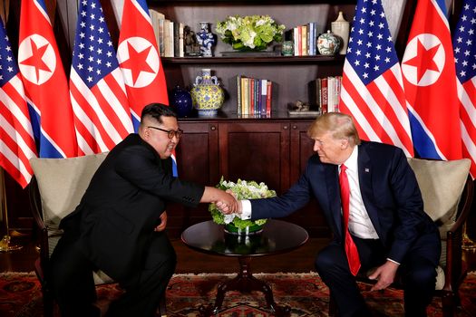 Cei doi lideri s-au întâlnit pe insula Sentosa, în Singapore, după luni de negocieri diplomatice, pentru a discuta despre reducerea tensiunilor militare şi denuclearizarea Peninsulei Coreene, relatează site-ul postului BBC.