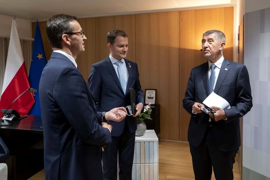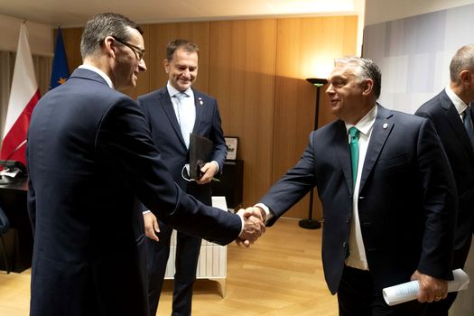 Dacă toţi liderii europeni au purtat masca pe faţă şi s-au salutat cu cotul, fotografiile de la reuniunea separată a Grupului de la Vişegrad arată că premierii Poloniei, Ungariei, Cehiei şi Slovaciei au avut feţele descoperite şi şi-au dat mâinile.