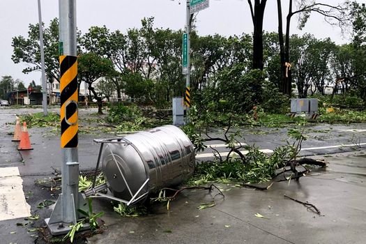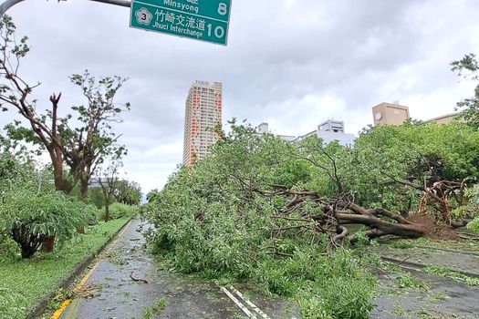 În orașul Tainan, câțiva stâlpi electrici din beton au fost rupți de la bază, iar poarta din lemn a unui templu important s-a prăbușit.