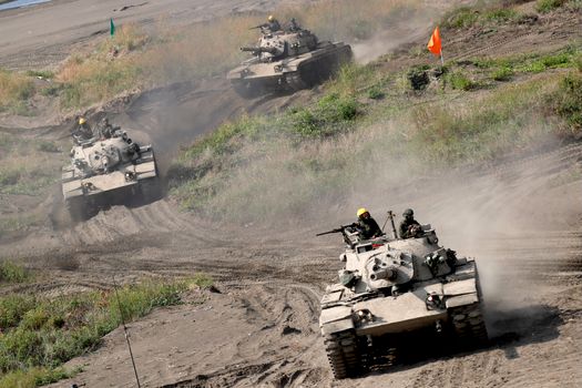 Ca răspuns, armata taiwaneză acţionează cu avioanele şi tancurile Indigenous Defense Fighter, în timp ce trupele terestre detonează explozibili pentru a opri avansarea.