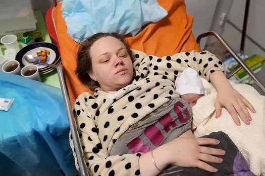 În aceeaşi pijama cu buline, cu semne de la răni şi vizibil obosită, femeia a născut vineri o fetiţă, căreia i-a pus numele Veronika, informează