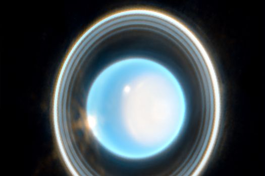 A urmat Uranus, fotografiat cu culoarea sa cyan şi cu lunile sale Puck, Miranda, Ariel, Umbriel, Titania şi Oberon.
