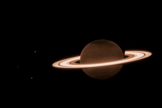 Saturn pare extrem de întunecat la această lungime de undă în infraroşu observată de telescop, deoarece gazul metan absoarbe aproape toată lumina soarelui care intră în atmosferă. Cu toate acestea, inelele de gheaţă rămân relativ strălucitoare, ceea ce duce la apariţia neobişnuită a lui Saturn.