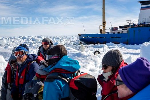 Pasagerii navei ruseşti au mers pe urmele expediţiei istorice pe care exploratorul australian Sir Douglas Mawson a făcut-o în Antarctica în urmă cu un secol (1911-1914).