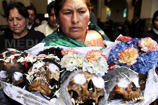Oamenii din La Paz sărbătoresc „Ziua Craniului” aducând mâncare, alcool şi ţigări ca ofrandă unor cranii ale persoanelor necunoscute, pentru a le mulţumi morţilor pentru protecţie, scrie dailymail.co.uk.