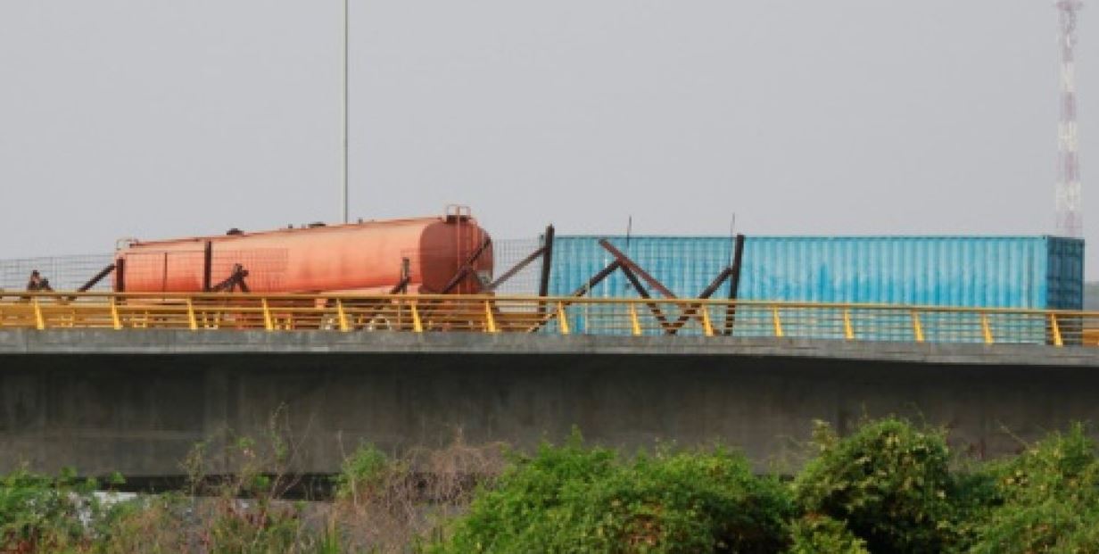 Un camion şi o autocisternă blocau marţi accesul pe podul Tienditas, care legă Cucuta din Columbia de Urena din Venezuela.