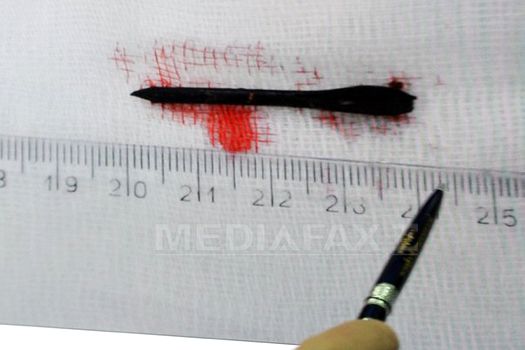 Una dintre aceste fotografii, păstrată în arhivele informatice ale spitalului, arată o schijă scoasă din corpul pacientului, potrivit doctorului Kuzneţov, cu o lungime de aproximativ patru centimetri, pe o bucată de pânză cu urme de sânge.
