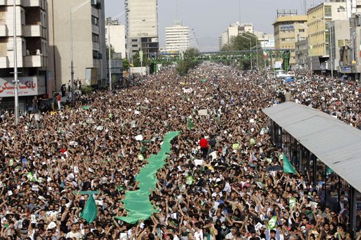Focuri de armă au fost auzite la finalul manifestaţiei a câteva sute de mii de susţinători ai lui Mir Hossein Moussavi, rivalul învins de preşedintele ultraconservator.