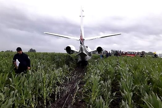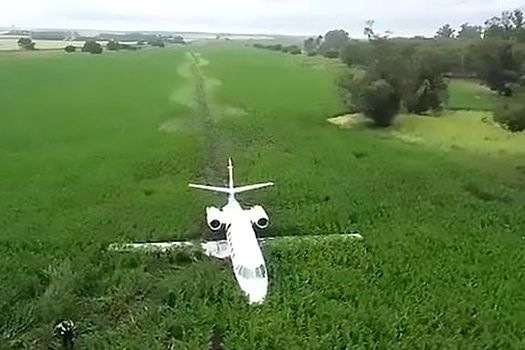 Incidentul s-a petrecut într-o zonă din estul Argentinei. În imagini se vede urma lungă lăsată de aeronavă, care avea nouă pasageri la bord, în câmpul de porumb.