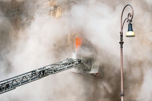 Pompierii intervin în Largo Corrado Ricci cu trei echipe operative, două autoscări și unități speciale pentru a salva un muncitor îngropat sub dărâmături, transmite La Repubblica.