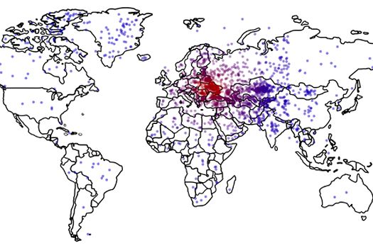 *punctele sunt colorate în funcţie de precizia răspunsurilor, cu roşu pentru cele mai exacte răspunsuri şi albastru pentru cele mai puţin precise.