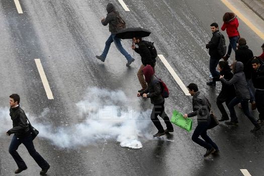 Incidente de scurtă durată dar violente au izbucnit în momentul în care zeci de manifestanţi au aruncat cu pietre într-un autocar cu poliţişti. Foţele de ordine au folosit grenade lacrimogene pentru a dispersa mulţimea, potrivit unui fotograf al AFP.