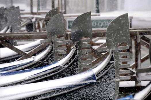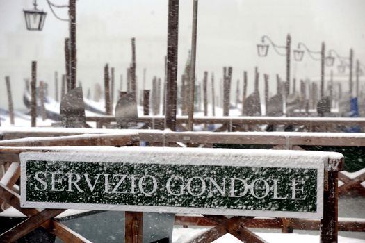 Aproximativ 14 la sută din oraş era sub ape şi un strat fin de zăpadă acoperea palatele, podurile şi faimoasele gondole, sâmbătă dimineaţă.