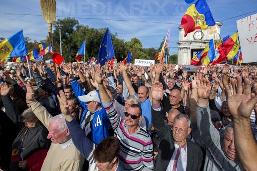 Manifestanţii cer demisia preşedintelui Nicolae Timofti, a Guvernului Valeriu Streleţ şi alegeri parlamentare anticipate.