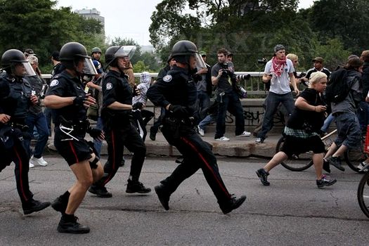 Poliţiştii care purtau măşti de gaze au dispersat manifestanţii radicali şi violenţi, reţinând 75 dintre aceştia, a anunţat sâmbătă seara şeful poliţiei locale din Toronto, William Blair.