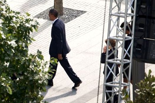 La New York, ceremonia care a avut loc pe locul fostelor turnuri gemene – Ground Zero -, a avut loc în prezenţa preşedintelui Barack Obama, a fostului preşedinte George W. Bush, a autorităţilor locale ale oraşului şi statelor New York şi New Jersey precum şi a membrilor familiilor victimelor. Locul s-a dovedit aproape neîncăpător iar pompierii supravieţuitori care au ajuns primii la locul atacului au fost omişi în acest an.