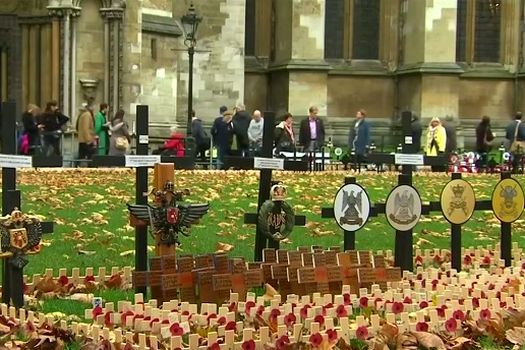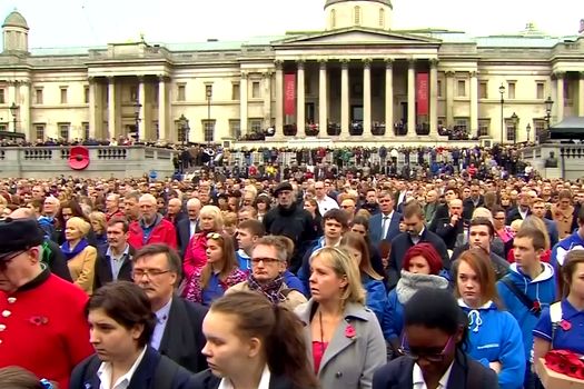Momentul de reculegere, care s-a ţinut în toate instituţiile din Marea Britanie, a început la ora 11.00, când, în 1918, armele au tăcut definitiv de-a lungul frontul de vest şi s-a încheiat Primul Război Mondial.
