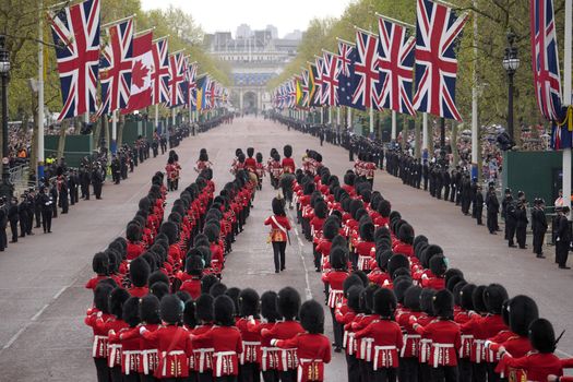 Peste 5.000 de membri ai Forţelor Armate Britanice şi 400 de membri ai Forţelor Armate din cel puţin 35 de alte ţări ale Commonwealth-ului au făcut parte din cele două procesiuni, iar 1.000 s-au aliniat de-a lungul traseului.