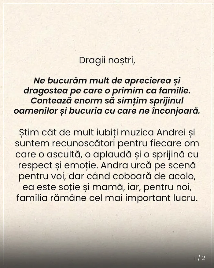 UPDATE #4: Cătălin Măruță a postat pe contul de Instagram un mesaj adresat fanilor Andrei: ”(…) Contează enorm să simțim sprijinul oamenilor și bucuria cu care ne înconjoară (…)”