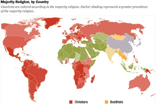 Harta religiilor principale din lume arată cum creştinismul a ajuns să domine o parte atât de mare a globului şi ce semnificaţie are acest lucru.