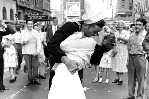 Sărutul pasional dintre un marinar şi o infirmieră în vârstă de 21 de ani a fost surprins într-o fotografie alb-negru devenită celebră ce a fost realizată de Alfred Eisenstaedt pe 14 august 1945, la New York. Imaginea e asociată cu încheierea celui de-Al Doilea Război Mondial.