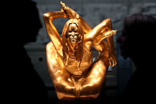 Acesta nu este singurul tribut – ce-i drept, ciudat – pe care lumea artei i l-a adus celebrului top model Kate Moss. Anul trecut, British Museum din Londra a expus o statuie din aur masiv, realizată de Marc Quinn, care o reprezintă pe aceasta. Lucrarea cântărea 50 de kilograme şi era estimată la 1,5 milioane de lire sterline.
