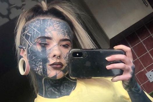 Nadine a dus însă pasiunea tatălui ei pentru tatuaje la un alt nivel. Şi-a acoperit aproape tot corpul. În plus, şi-a făcut şi o mulţime de piercinguri şi şi-a despicat limba.