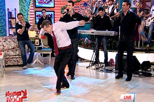 Măruţă a reuşit să smulgă şi o promisiune din partea şefului din Ghencea: de pe Happylica, acesta a promis că dacă Steaua nu va lua campionatul, va veni din nou la ”Happy Hour” şi va dansa greceşte timp de o jumătate de oră.