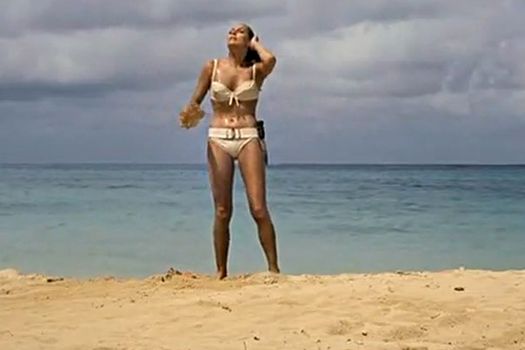 1. Ursula Andress în „Dr. No” (1962). Când prima fată Bond a ieşit din valuri în bikini cu o centură la care purta un cuţit, a uimit bărbaţi şi femei deopotrivă.