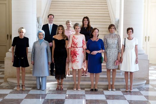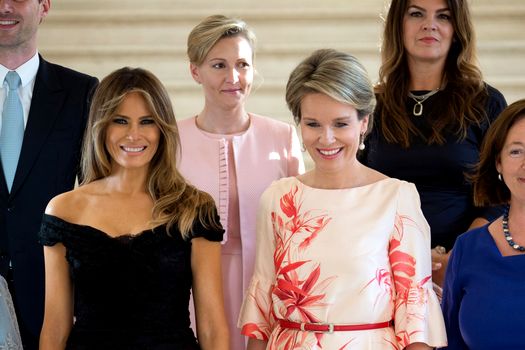 Spre miezul zilei, Prima Doamnă a Americii a optat pentru schimbarea vestimentaţiei la întâlnirea cu soţiile liderilor participanţi la reuniunea NATO, printre acestea numărându-se Ermine Erdogan (Turcia) sau Amélie Derbaudrenghien (Belgia). Melania Trump a ales o rochie din dantelă neagră de la Dolce and Gabbana. La rândul ei, Brigitte Macron a păstrat aceeaşi ţinută.