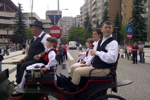 Oameni îmbrăcaţi în straie populare, veniţi din judeţele Covasna, Mureş, Bistriţa-Năsăud, Harghita şi chiar din Ungaria s-au adunat, sâmbătă dimineaţă, în centrul municipiului Miercurea Ciuc, unde peste 30 de grupuri folclorice au prezentat dansuri populare.