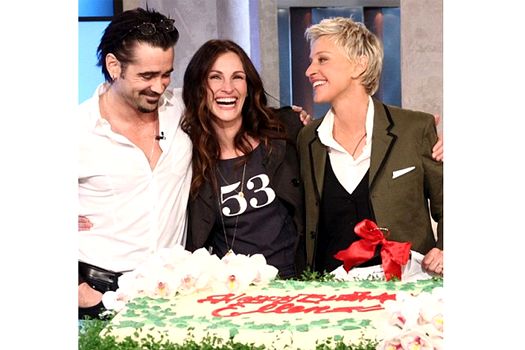 Această urare a fost doar una din multele surprize primite de Ellen DeGeneres de ziua ei. Actorii Julia Roberts şi Collin Farell au apărut pe neaşteptate şi i-au făcut cadouri realizatoarei TV, iar Pink, una dintre bunele prietene ale vedetei, a cântat o melodie special pentru ea.