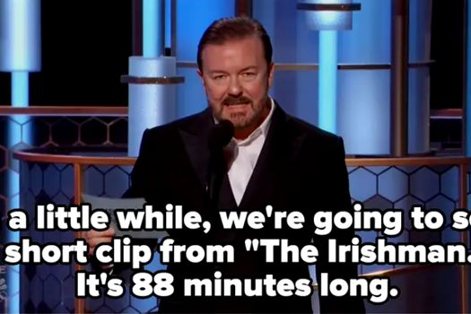El a spus că Asociaţia Presei de la Hollywood, care înmânează Globurile de Aur, intenţionase să dedice un moment comemorativ celebrităţilor care şi-au pierdut viaţa în 2019, „dar când am văzut lista persoanelor care au murit, nu mi s-a părut suficient de diversă”, a comentat Gervais. A comparat suicidul lui Jeffrey Epstein cu acţiunea serialului „Afterlife”. „Sezonul 2 e pe drum, aşa că e evident că personajul nu s-a sinucis la final. Exact la fel ca Jeffrey Epstein.”