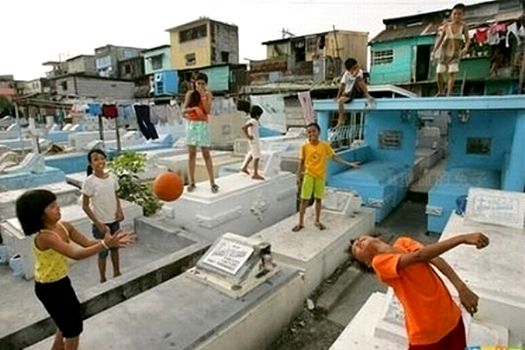 Din cauza supraaglomerării oraşului Manila, oamenii nu au avut încotro şi s-au îndreptat spre periferie. Astfel, 10.000 de oameni trăiesc astăzi într-un cel mai mare cimitir din capitala filipineză, ei transformând locul într-un adevărat orăşel, cu magazine şi restaurante.