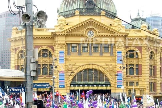 Flinders Street Staion, Melbourne: Este una dintre cele mai importante şi aglomerate staţii din emisfera sudică. Se remarcă prin faţada galbenă şi domul verde de cupru.