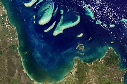 Imaginea Golfului Princess Charlotte, din Australia, surprinsă de satelitul Landsat 8 în luna aprilie.