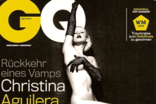 Christina Aguilera apare nud pe coperta ediţiei germane a revistei GQ, artista purtând doar cizme negre Louboutin şi mănuşi.