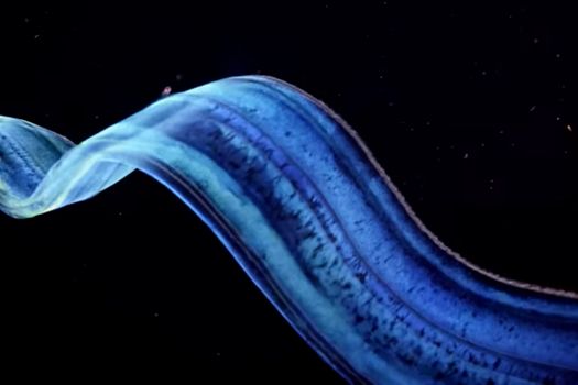 Ribbon jellies pot ajunge la peste un metru lungime, iar când se strâng, ca în video, înseamnă că se simt ameninţaţi şi se apără.