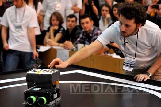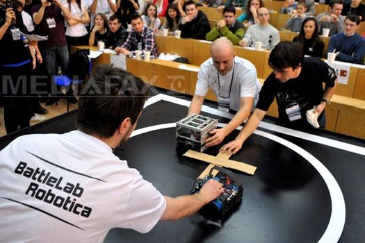 Studenţii Universităţii Tehnice Cluj-Napoca au înscris, sâmbătă, în competiţia „BattleLab Robotica” 21 de roboţi autonomi, construiţi de ei, pentru a se duela într-o competiţie de tip sumo.