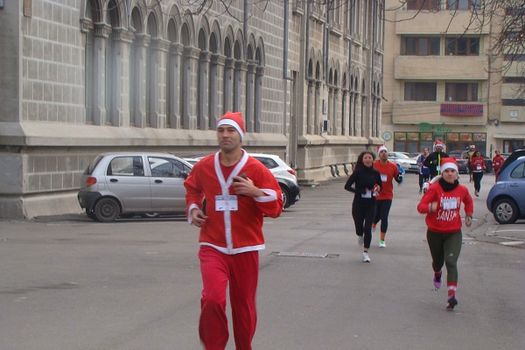 La start s-au strâns peste 30 de persoane, printre care şi un băiat de nouă ani, toţi purtând cel puţin căciulă de Moş Crăciun, dar au fost şi participanţi care aveau costumul complet al acestuia, iar un altul a alergat cu tricolorul pe umeri.