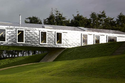 Balancing Barn se află în estul Marii Britanii, în Suffolk, şi a fost proiectată de compania olandeză MVRDV. O jumătate din clădire este suspendată deasupra pământului, fără niciun punct de sprijin, potrivit CNN.