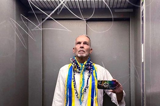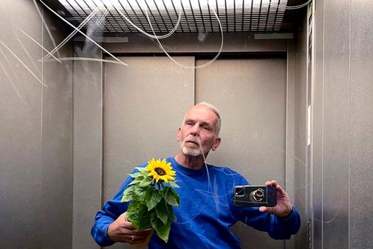 În fiecare zi, stilistul se îmbracă într-un outfit colorat, cu culorile steagului Ucrainei (galben şi albastru) şi îşi face selfie-uri în lift. Le postează apoi pe contul său de Instagram şi speră, astfel, ca oamenii să nu uite de tragedia prin care trec ucrainenii şi să nu le întoarcă spatele.