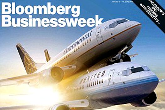 Bloomberg Businessweek a realizat această copertă pentru a ilustra fuziunea companiilor aeriene Continental şi United airlines, informează Daily Mail.