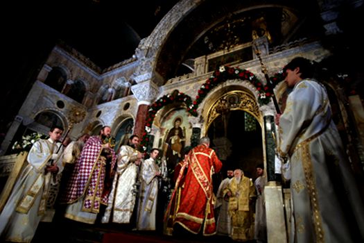 În Grecia, naşterea lui Iisus este celebrată pe 25 decembrie, însă Crăciunul este mai puţin important decât Paştele. În Ajun, o masă frugală încheie o perioadă de post de 40 de zile. Oamenii se culcă devreme pentru a asista la slujba care începe la ora 4 dimineaţa. Pe 25 decembrie, la întoarcerea de la biserică, toată familia împarte miere, fructe uscate şi Christopsomo ("pâinea lui Hristos"), un fel de plăcintă cu nuci pe care stăpâna casei a preparat-o în ajun şi în care a avut grijă să-şi lase amprenta degetelor, simbol al urmei degetelor lui Hristos, dovada că s-a născut.
