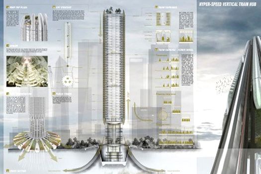 „Hyper Speer Vertical Train Hub îşi propune să rezolve provocările inevitabile cu care se vor confrunta marile oraşe până în 2075„, spun arhitecţii, „şi oferă o soluţie realizabilă şi sustenabilă pentru viitorul transportului„. Proiectul ar reduce impactul pe care îl au staţiile de metrou tradiţionale asupra spaţiului şi aglomeraţiei din metropolele mondiale, ar scădea nivelul poluării şi ar creşte eficienţa reţelelor de transport în comun.