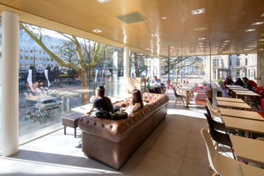 În plus, pentru a întări legătura dintre local şi spaţiul înconjurător, terasa exterioară a restaurantului include piese de mobilier asemănătoare celor regăsite în alte zone din Rotterdam.