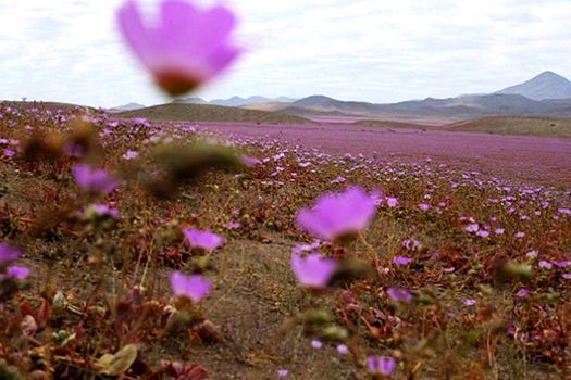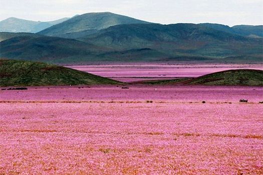 O dată la 5-7 ani, deşertul Atacama din Chile este “împodobit” cu un covor de o culoare roz uimitoare, ceea ce face ca întreg peisajul arid să se transforme.