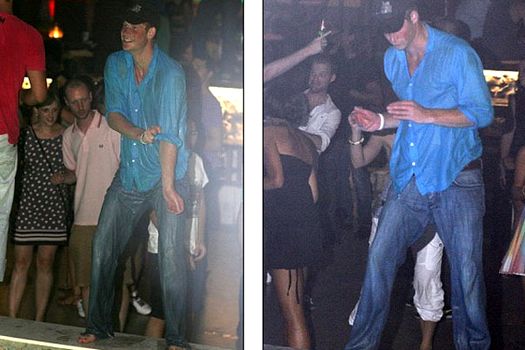 După ce a făcut o baie, fratele prinţului William a ieşit râzând din piscină şi a dansat alături de ceilalţi tineri de la petrecere. Mai târziu, prinţul a fost văzut la bar îmbrăcat cu un tricou alb împrumutat, purtându-şi cămaşa udă legată în jurul taliei.