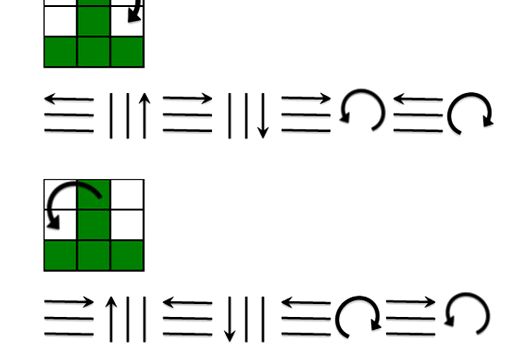 Cum pătratul din centrul stratului din mijloc se potriveşte deja cu stratul de jos, fiind orientat în acest fel din momentul formării crucii albe, nu trebuie decât să aduceţi cele două muchii în acelaşi rând.